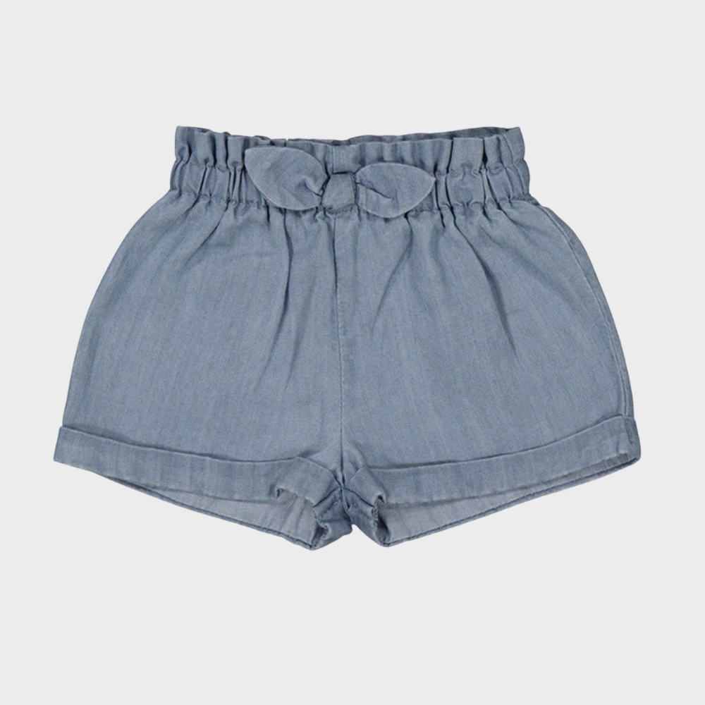 De opvallende paperbag tailleband met een schattig strikje voegt een girly touch toe en zorgt ervoor dat de baby shorts er geweldig uitzien in zowel alledaagse als elegantere outfits.