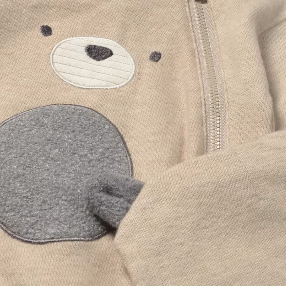 - Materiaal:- Slaapzak (bovenkant): 58% katoen, 33% polyester, 3% viscose, 3% elastaan, 2% polyamide, 1% wol, muts (top): 59% katoen, 39% polyester, 2% elastaan, voering: 100% katoen