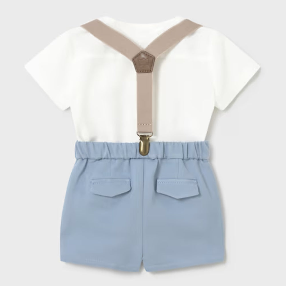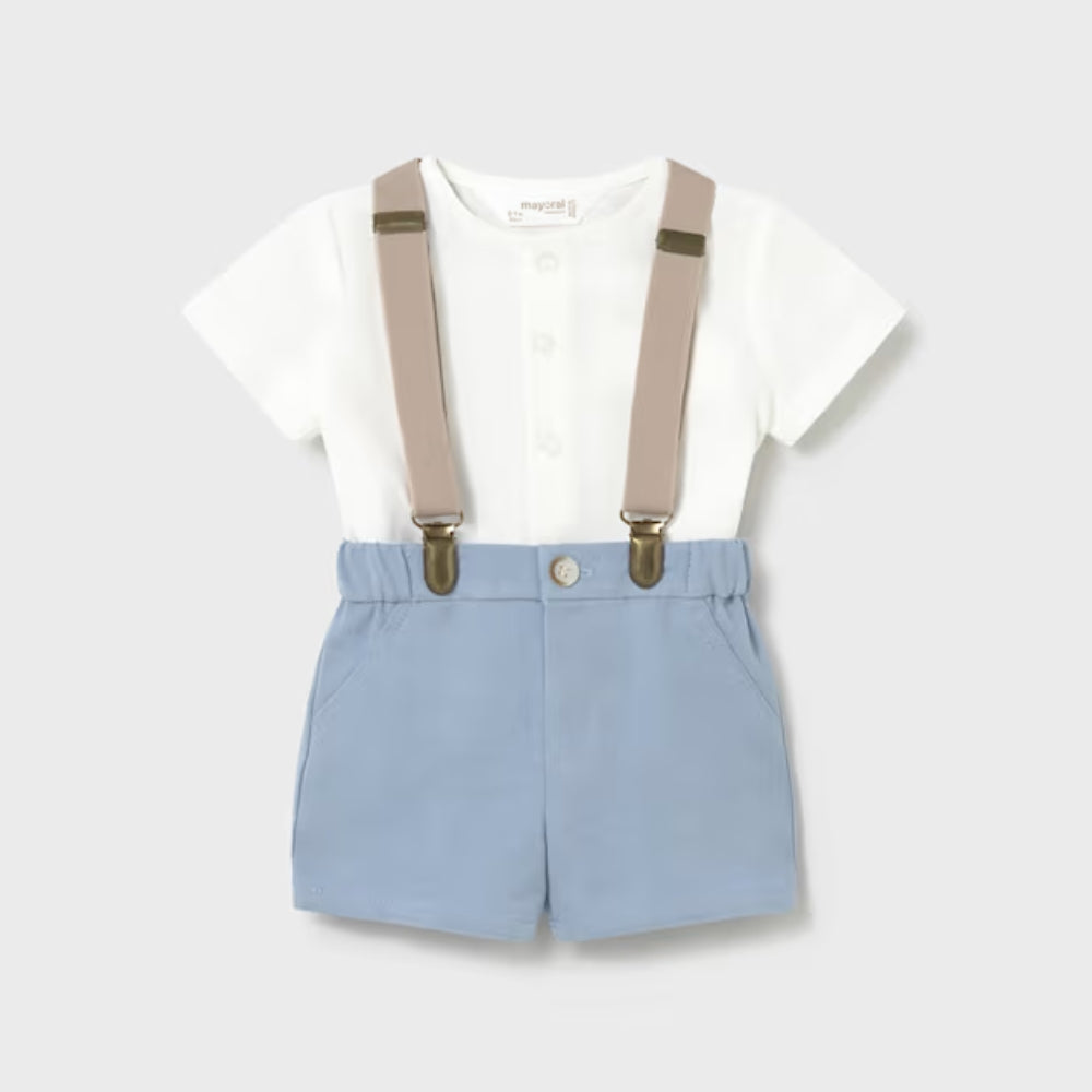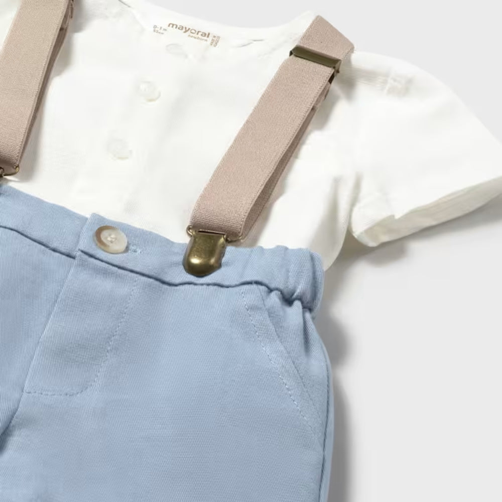 Mayoral set voor pasgeboren baby T-shirt, korte broek en bretels Regatta