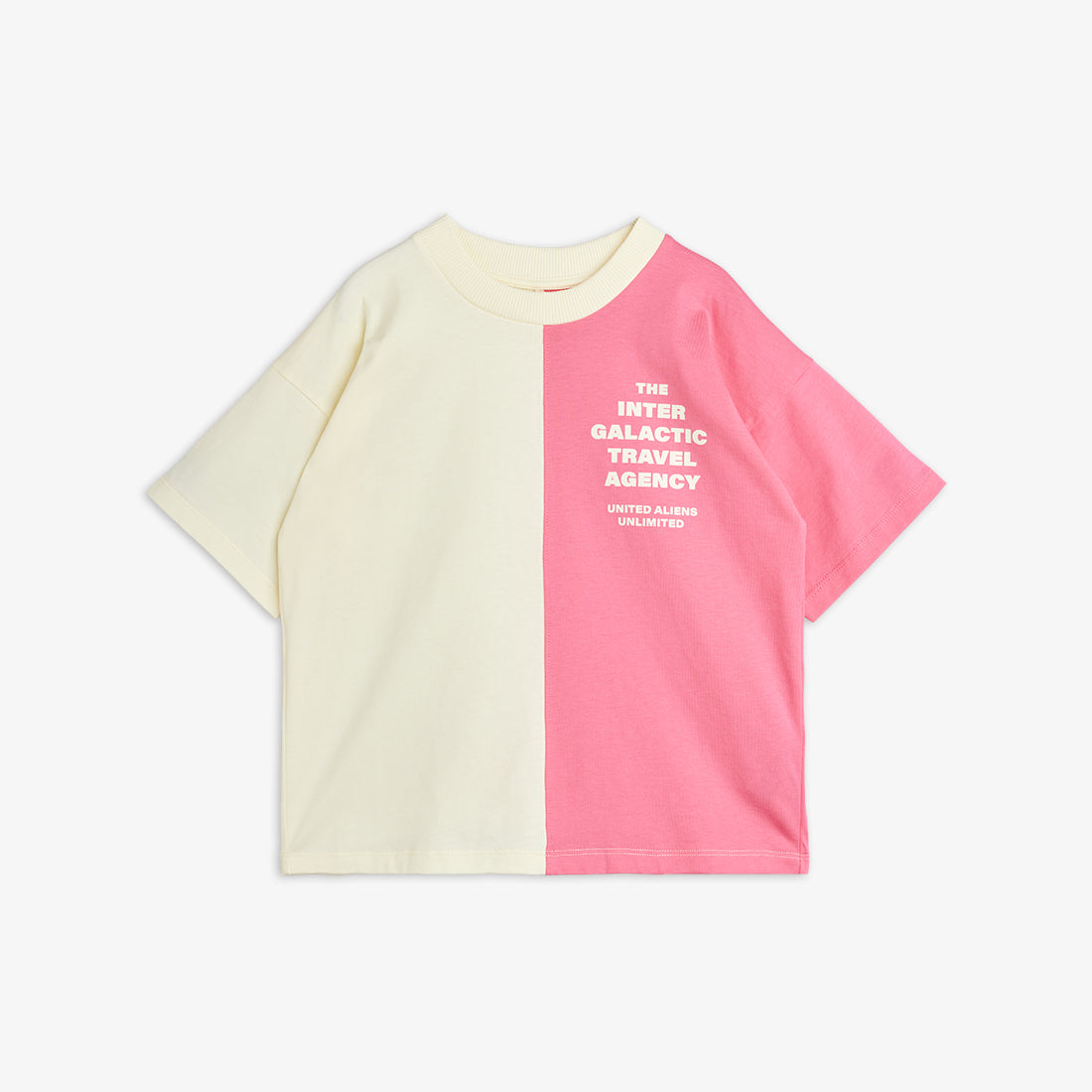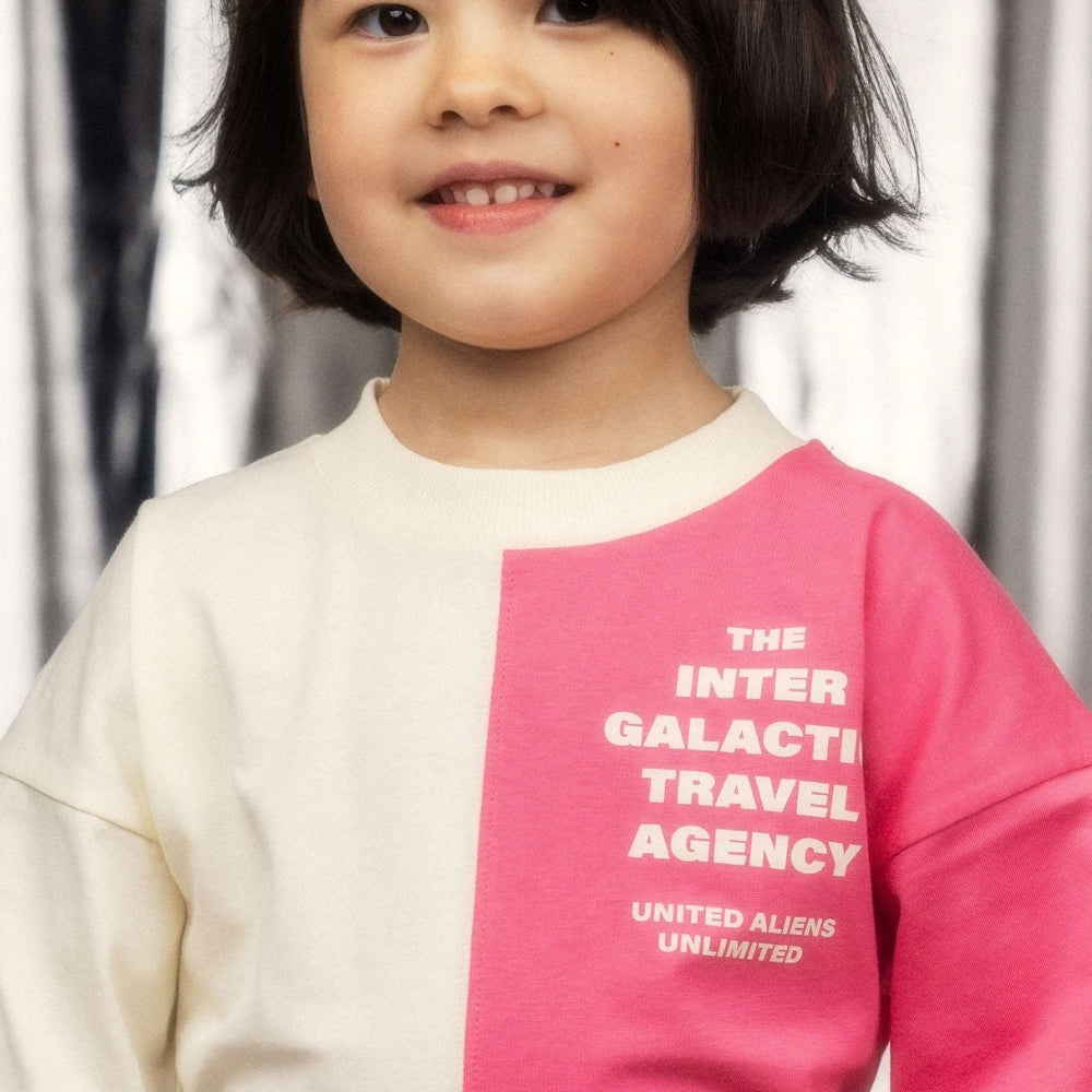 De tweekleurige verdeling trekt de aandacht en maakt het kinder-T-shirt tot een sterk stylingelement.