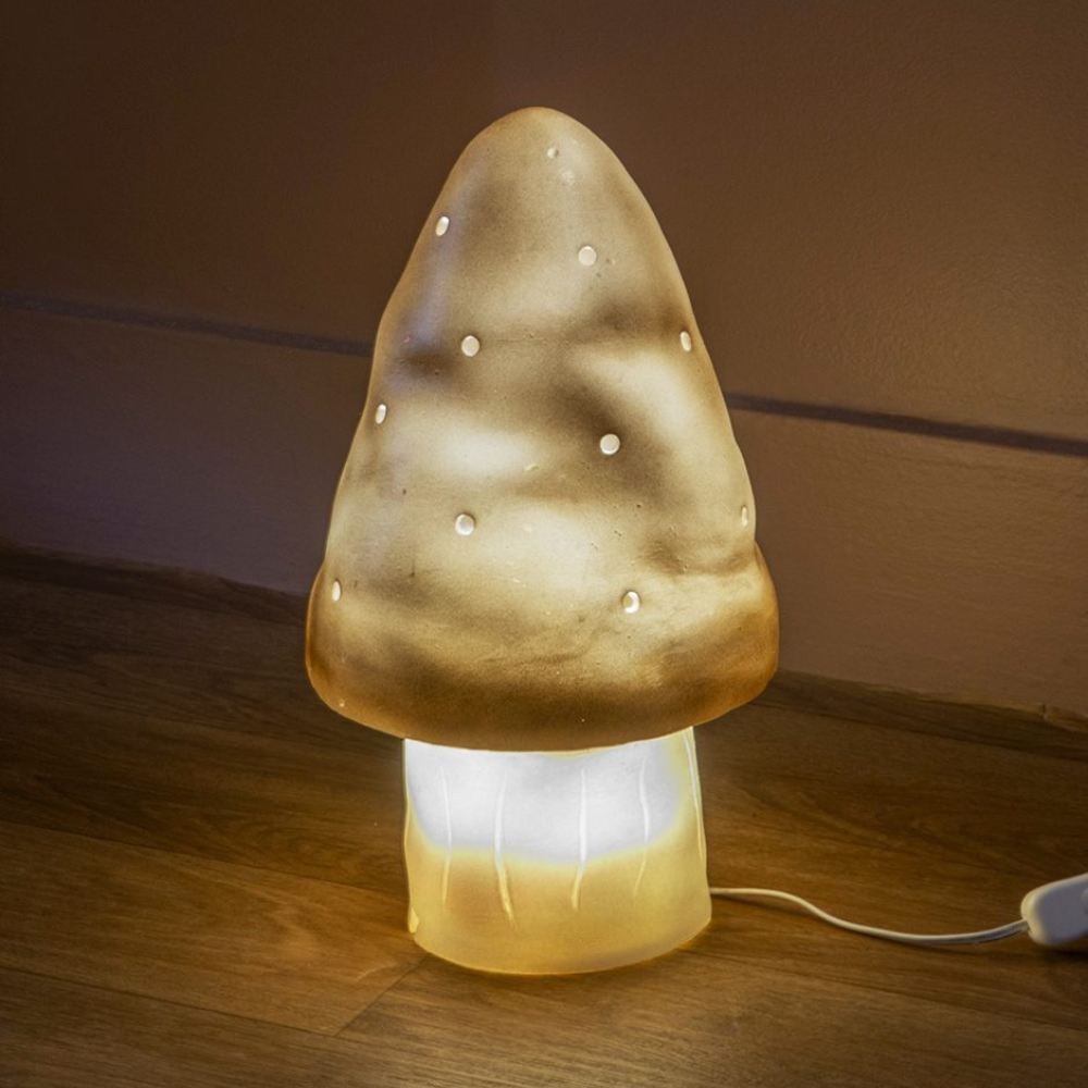 Het paddenstoelvormige bedlampje van Minikane is een charmant accent om gezelligheid toe te voegen aan een kinderhoekje.