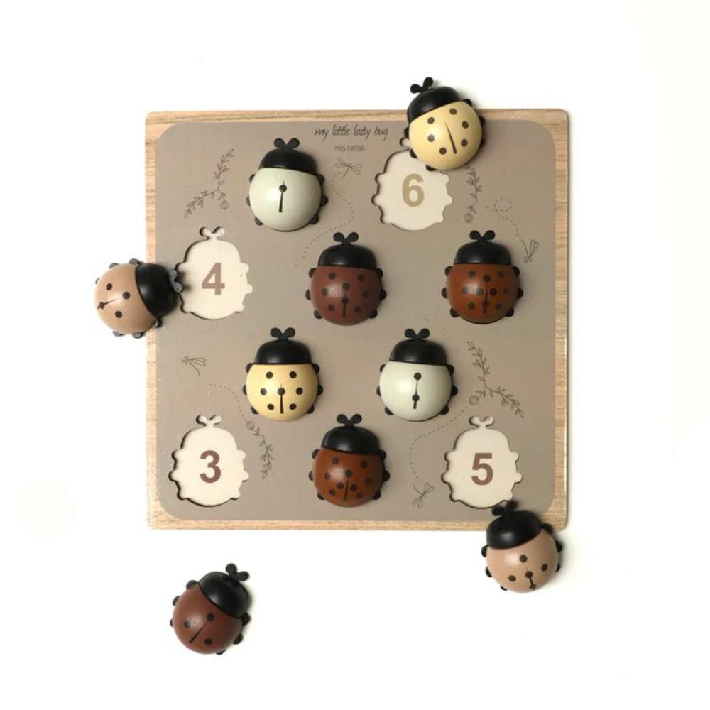 Het spel bevat 10 lieveheersbeestjes genummerd volgens hun stippen en een bijpassend bakje.