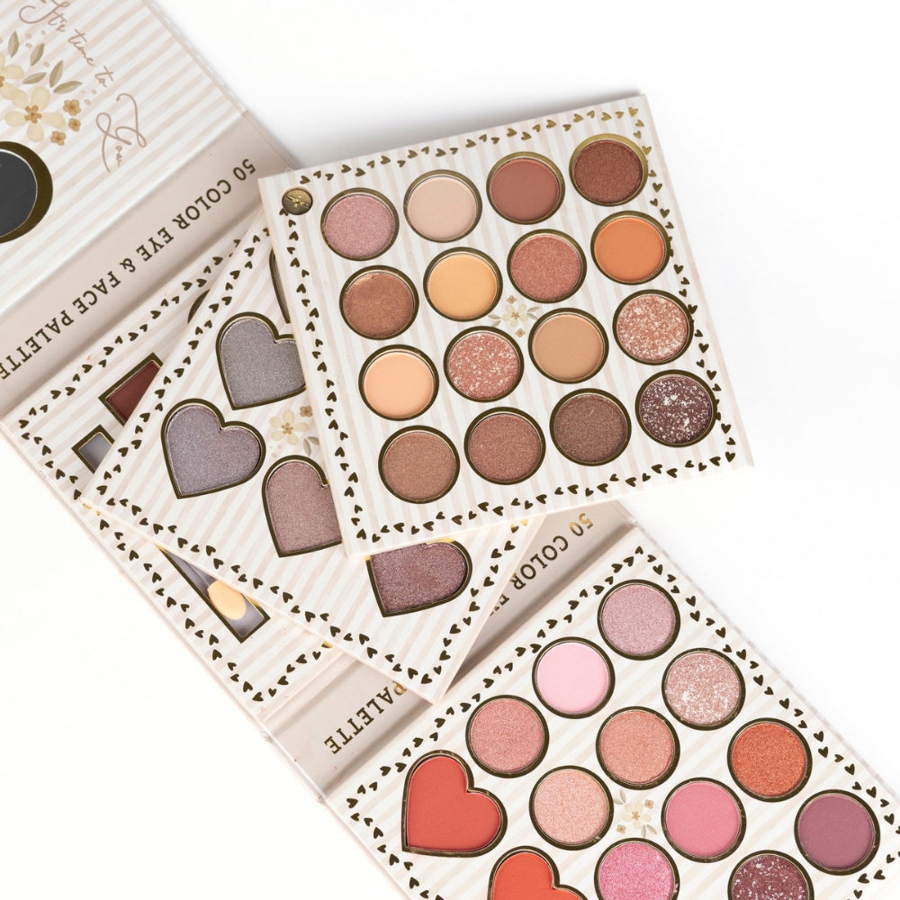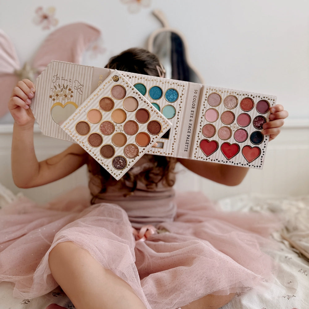 Het bevat wel 50 oog- en gezichtschaduwen in verschillende kleuren vol uitstraling en energie. Met dit palet kunnen kinderen hun eigen looks creëren, hun gevoel voor esthetiek ontwikkelen en tijd doorbrengen met creatief plezier.