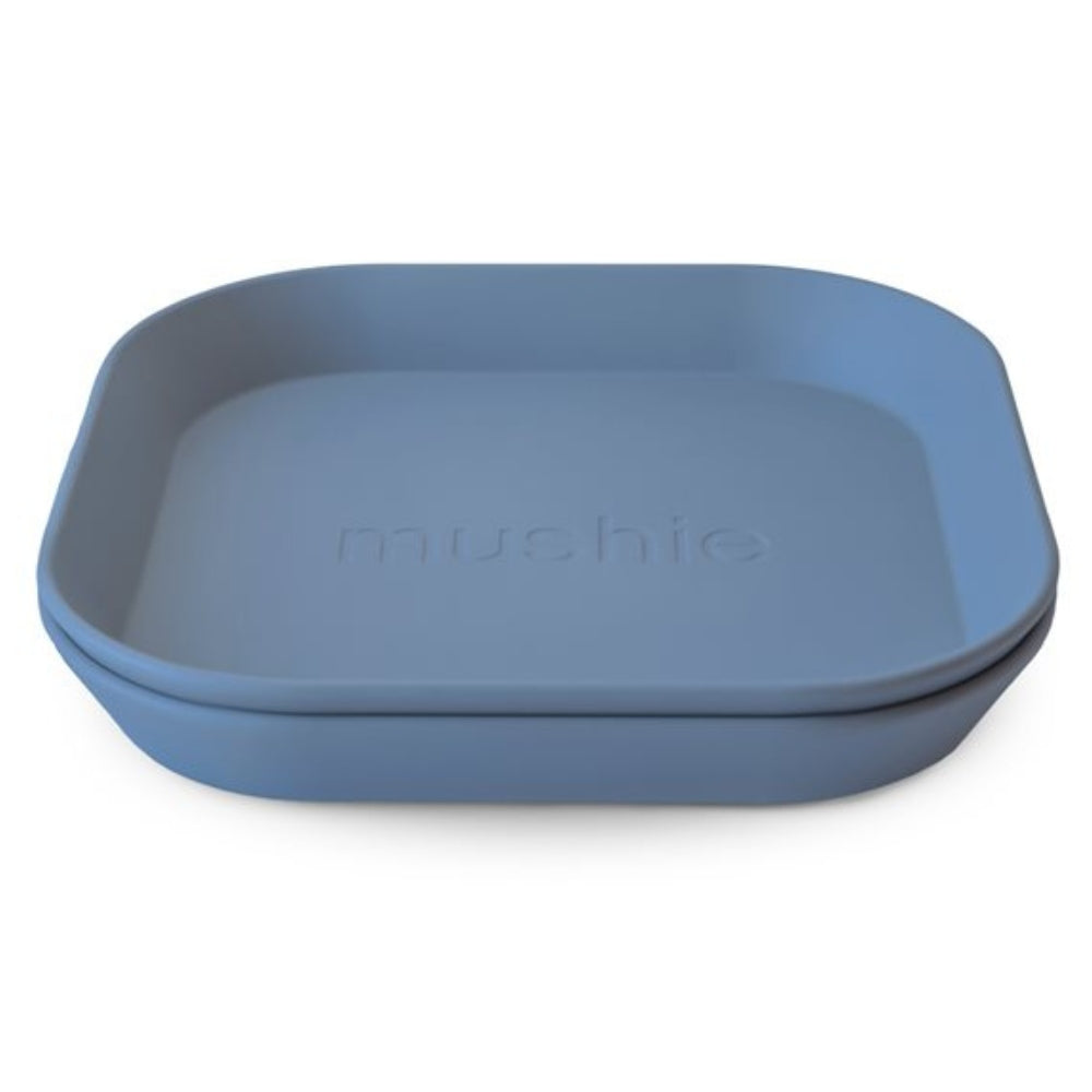 Mushie baby bordjes vierkant schemerblauw 2st