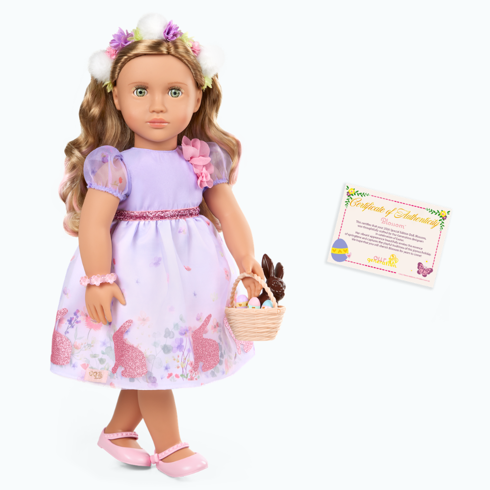 Onze Generation Blossom is een limited edition pop die je kind meeneemt naar de vrolijke paaswereld van schatzoeken en verhalen vertellen.