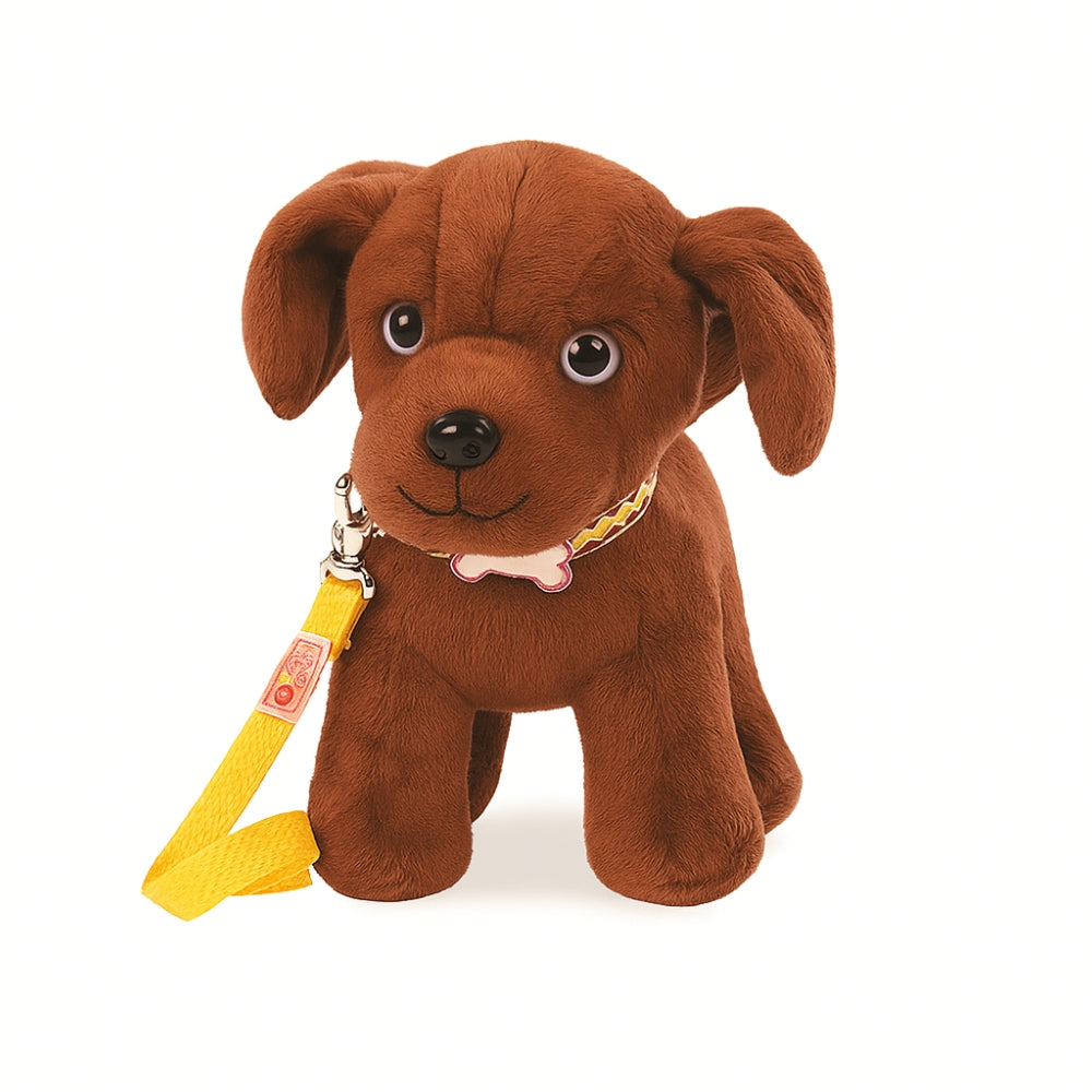 De Our Generation Labrador knuffel is een schattige pluche puppy met halsband en riem, klaar voor wandelingen en dagelijkse verzorging.