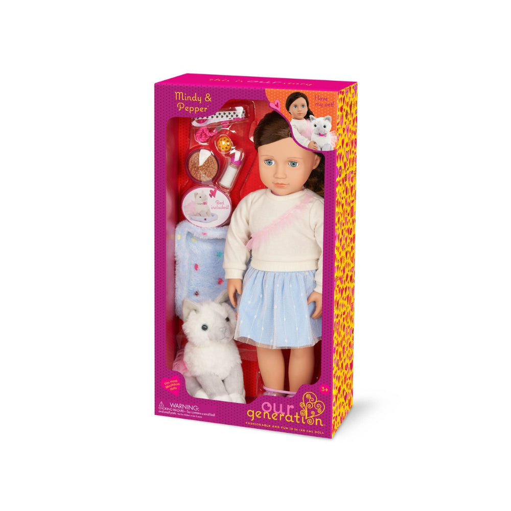 Prachtige Mindy babypop met schattige kat en accessoires van Our Generation.