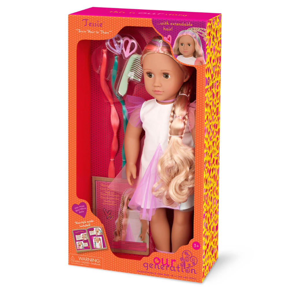 Onze Generation Tessie pop is de perfecte vriend voor een kind dat graag kamt, speldt en nieuwe kapsels bedenkt.