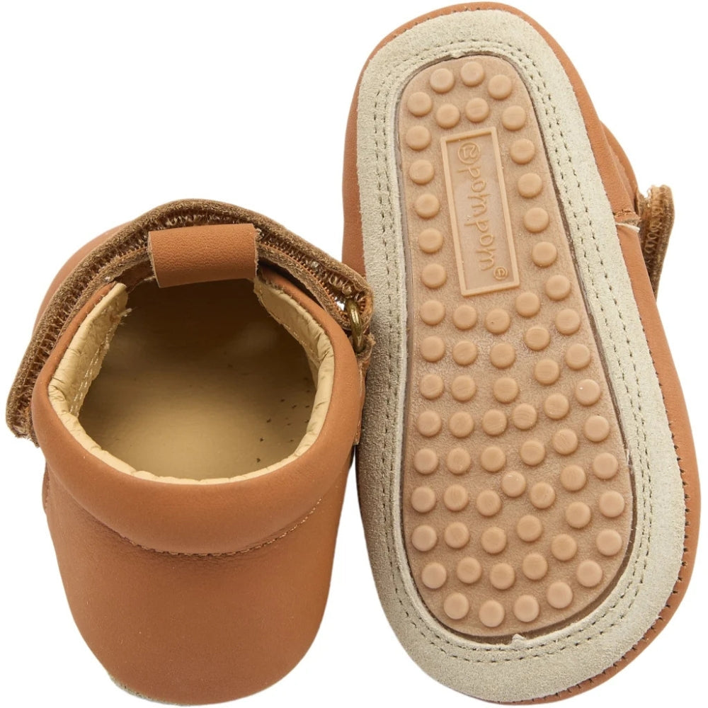 POM POM Baby leren ballerina's Beginners T-Bar Camel