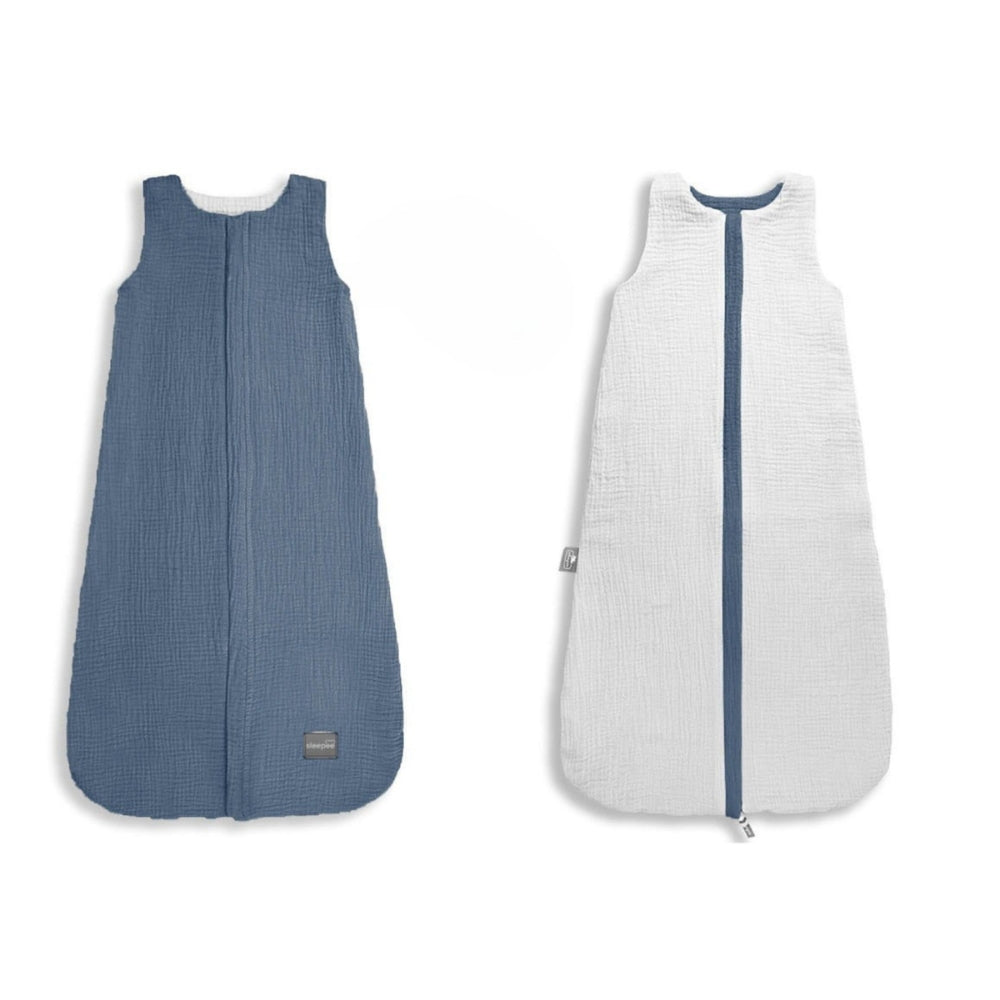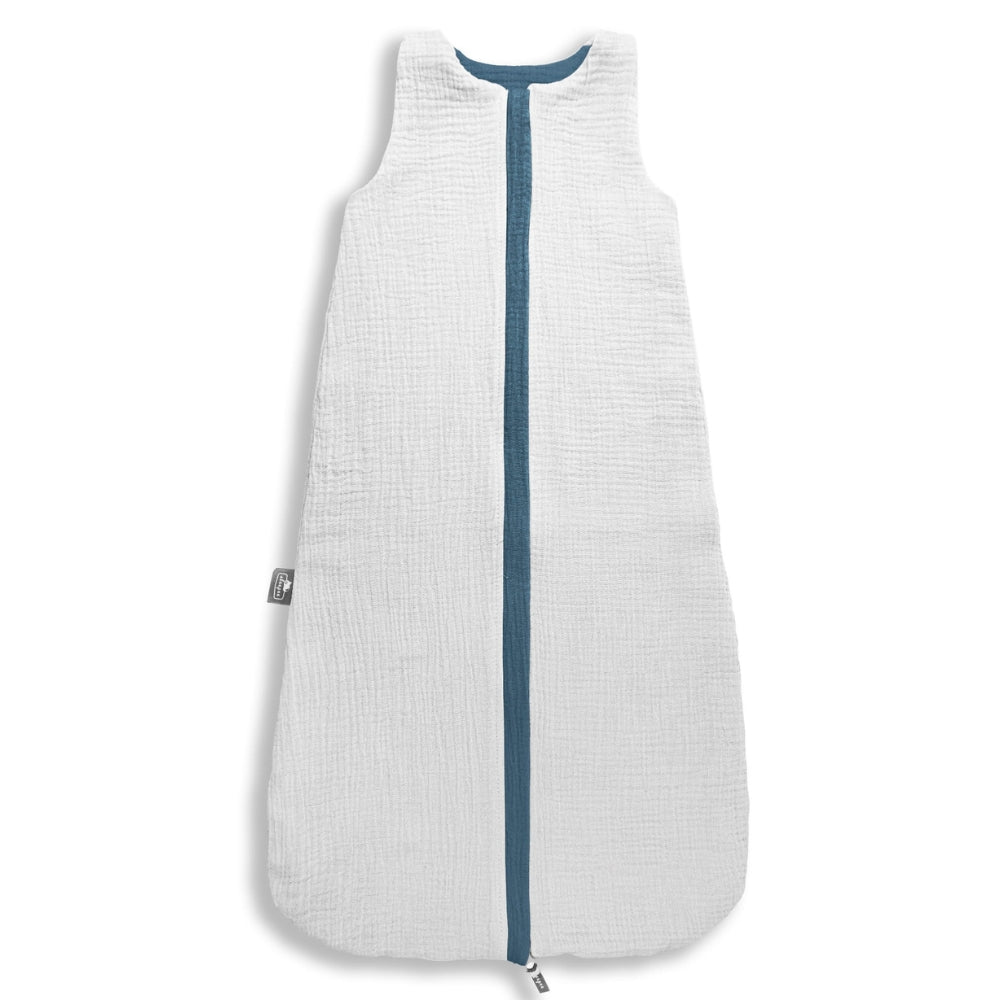 Deze innovatieve dubbelzijdige mousseline Petrol slaapzak van Sleepee.