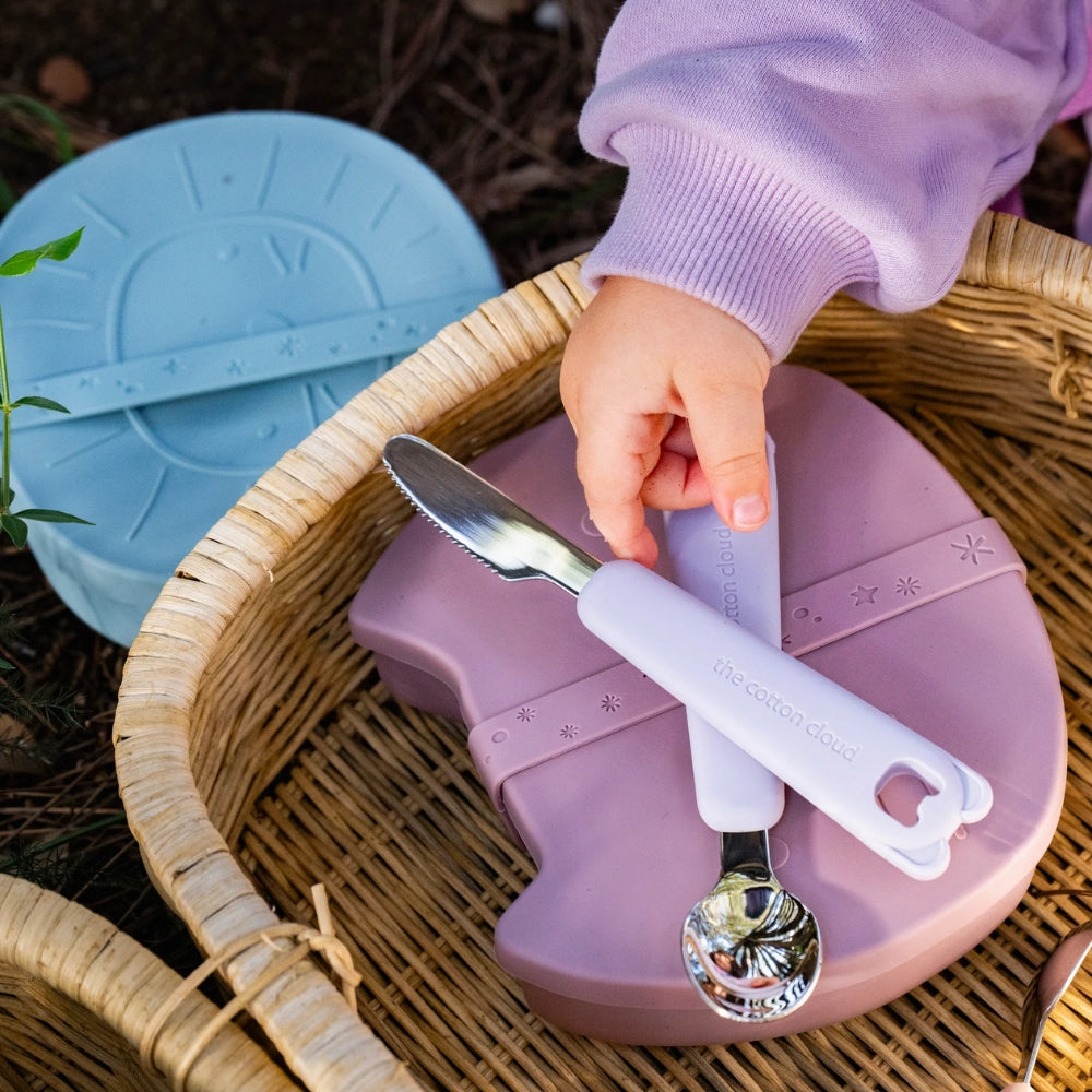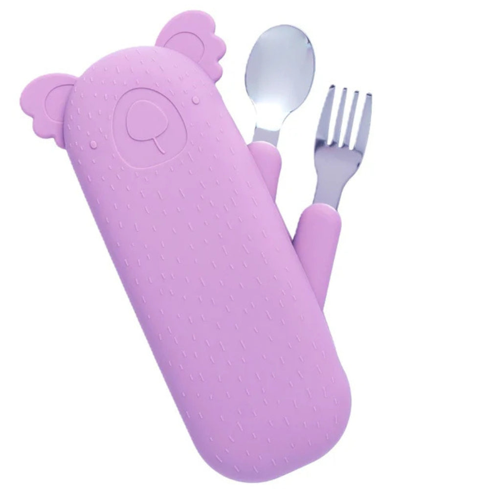 The Cotton Cloud kinderbestek in Zoe de Koala etui in Lila