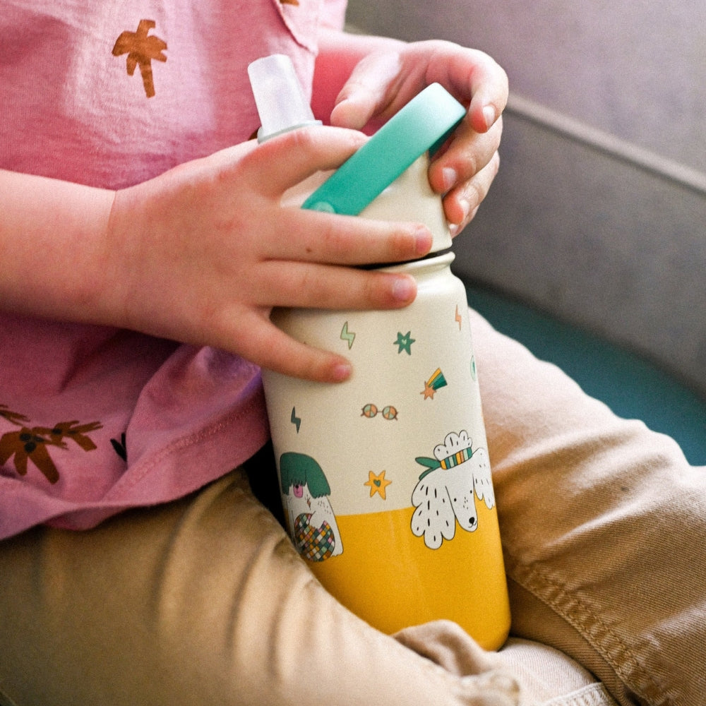 The Cotton Cloud Roestvrijstalen Bidon Funky Dogs 420ml voor kinderen