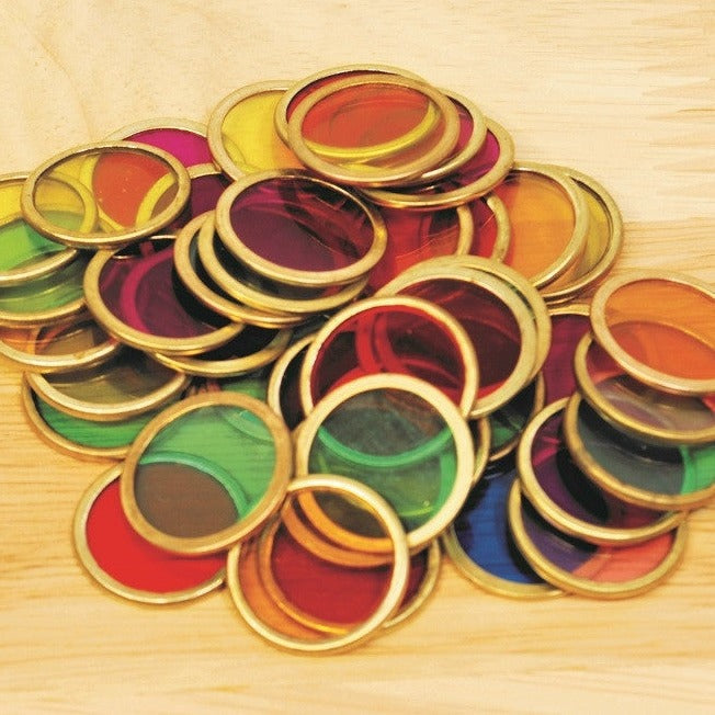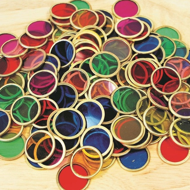 Kleurrijke transparante lopers met metalen rand, ideaal voor gebruik met magnetische toverstokken.