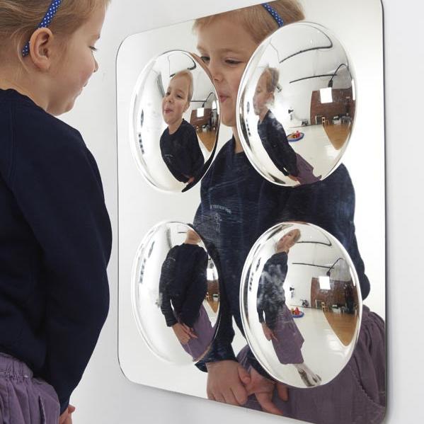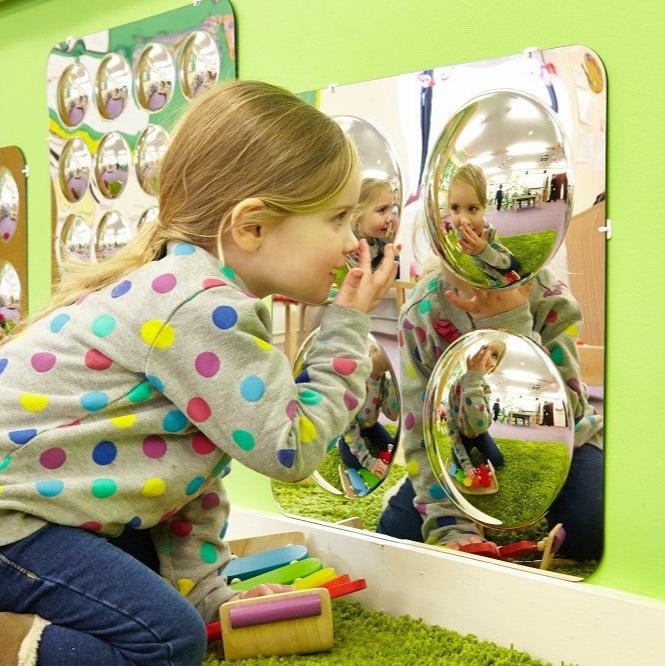 Convexe spiegelkoepels bieden een vervormd, leuk en interessant uitzicht dat kinderen aanmoedigt om verschillende perspectieven te verkennen en te ontdekken.