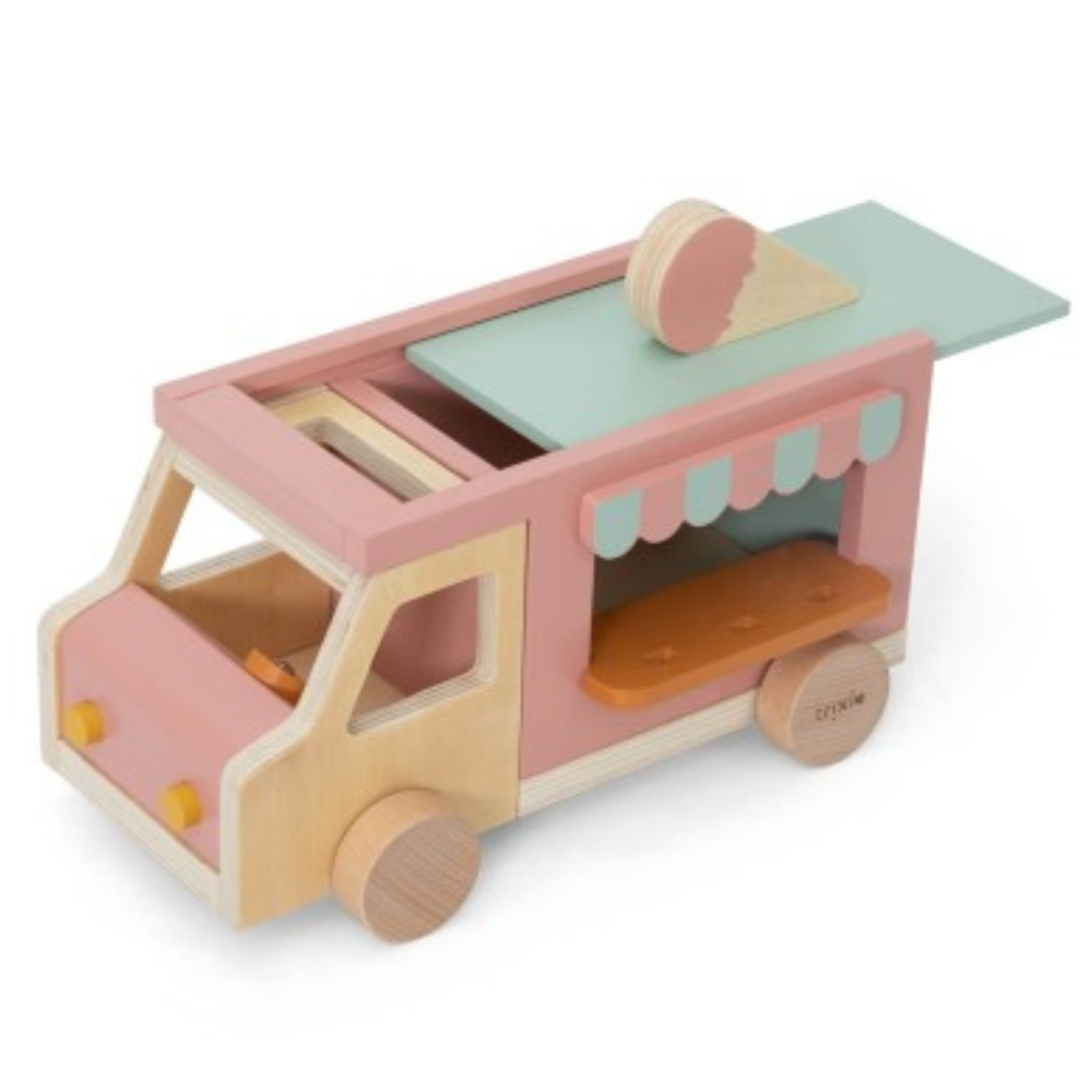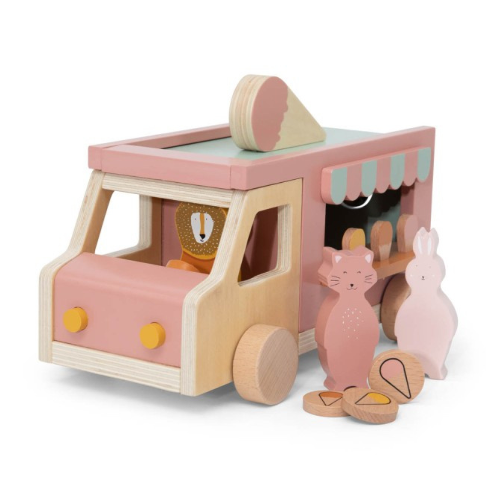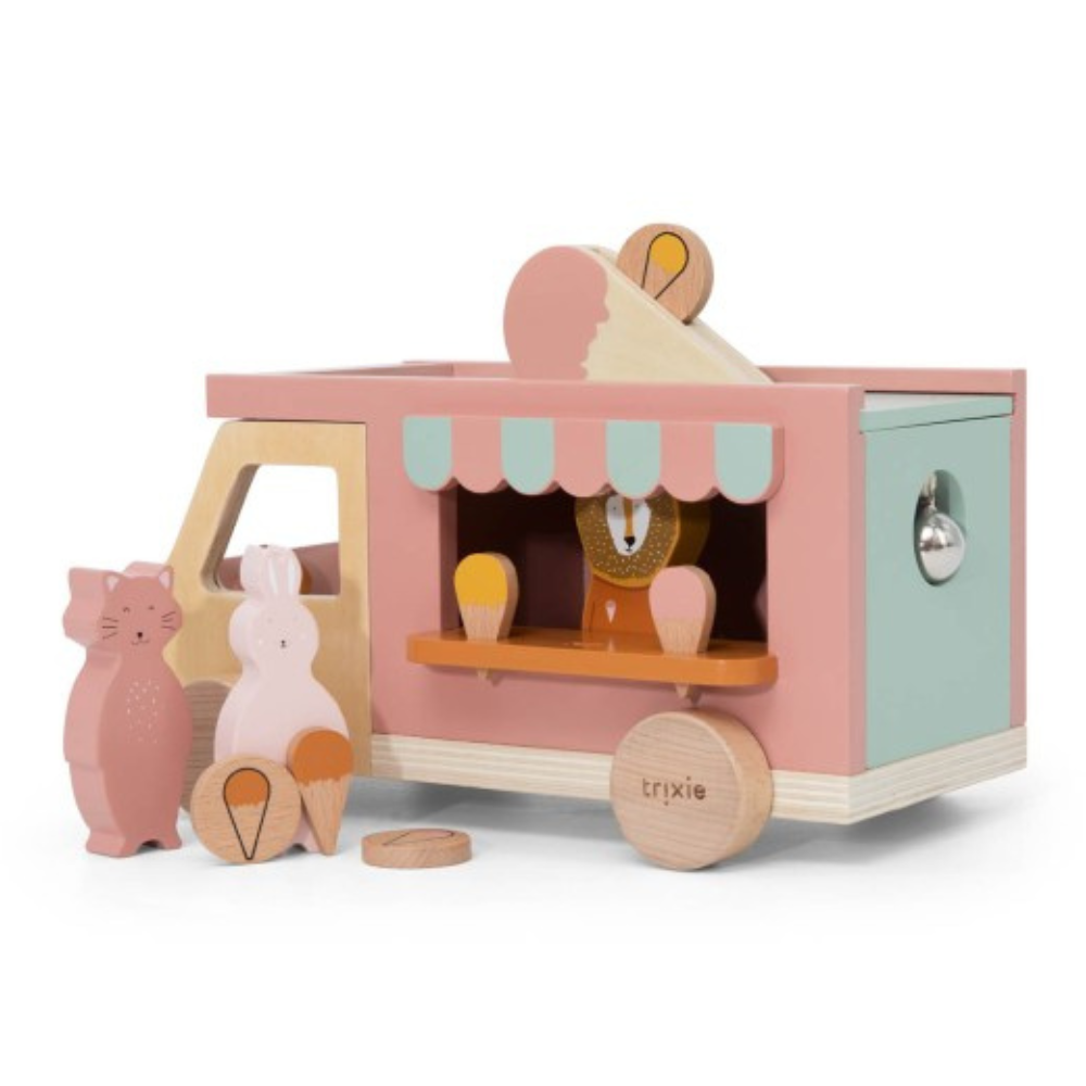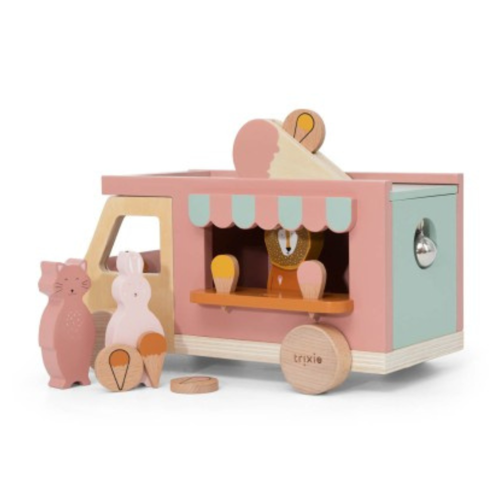 De houten truck is klaar voor dagelijkse creatieve "ijsjes"-avonturen. Dit Trixie-speelgoed past perfect in thuisbioscopen, winkels en scènes met je favoriete personages.