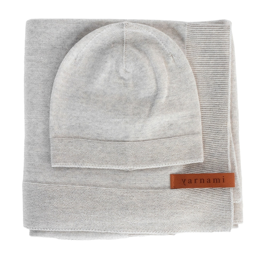 Yarnami by Poofi Cozy merino set voor baby beige-grijs