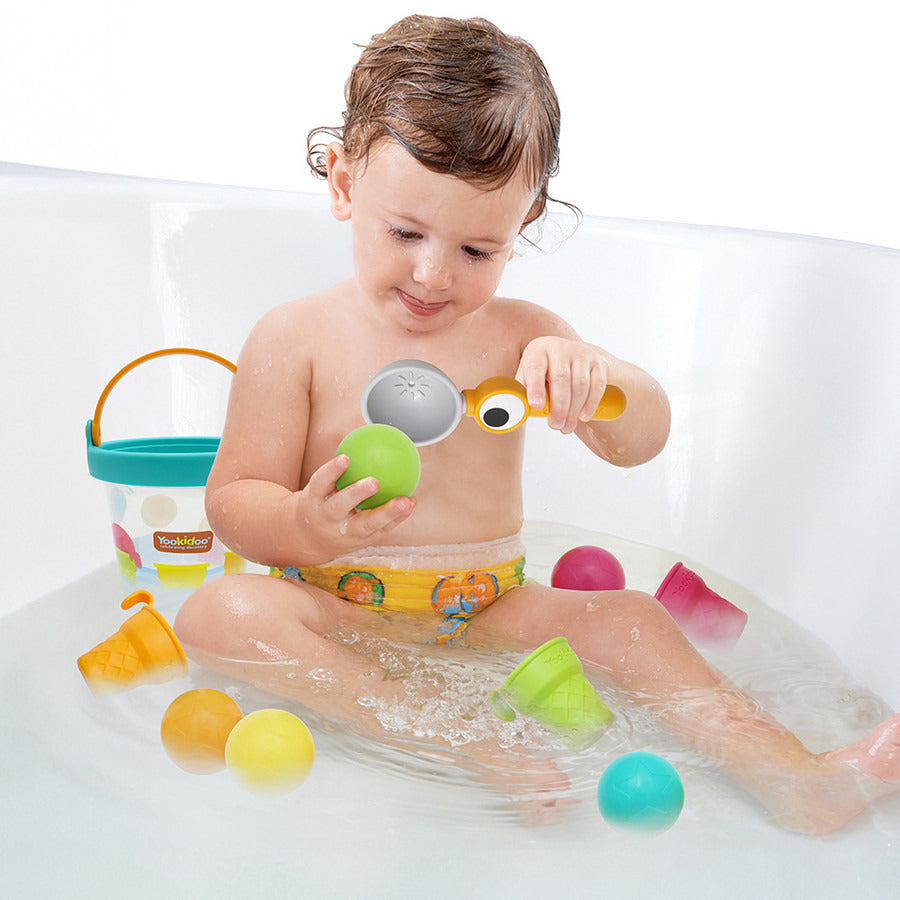 Het Yookidoo badspeeltje in de vorm van een kleurrijke ijsemmer verandert alledaagse badtijd in een vrolijk, ontdekkingsrijk spel.
